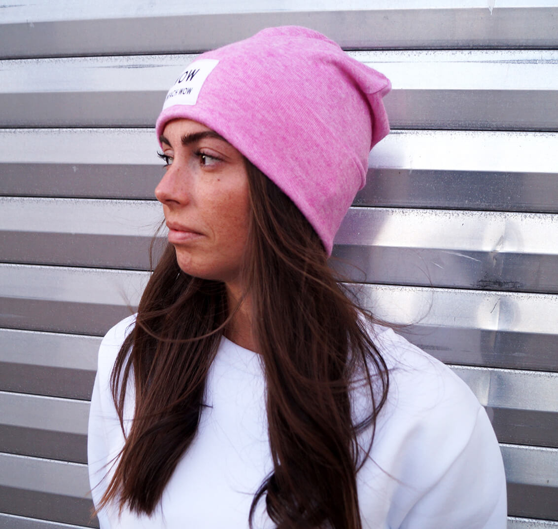 Beanie kann gekrempelt mit Statement Applikation oder als Longbeanie getragen werden